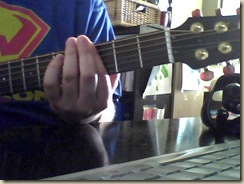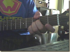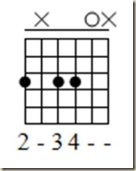 Un classique du Jazz, mais qui ne trouve pas tout à fait sa place ici. Sa sonorité jazzy (accord fermé) ne cadre pas vraiment avec le morceau et ce type de position n’est pas dans l’esprit d’un morceau de picking folk des années 70. Cette position permet néanmoins d’étouffer la corde de La.