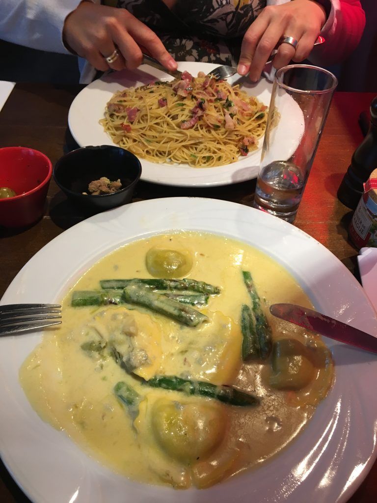 Le premier set se passe bien, je profite de l’entracte pour manger un bout. Ma Lovely Roadie reçoit une belle assiette de pâtes et moi des ravioles aux asperges dans une belle sauce. C’est très bon. Sur Internet les gens louent les repas et la carte des spiritueux, une réputation qui n’a pas l’air usurpée.