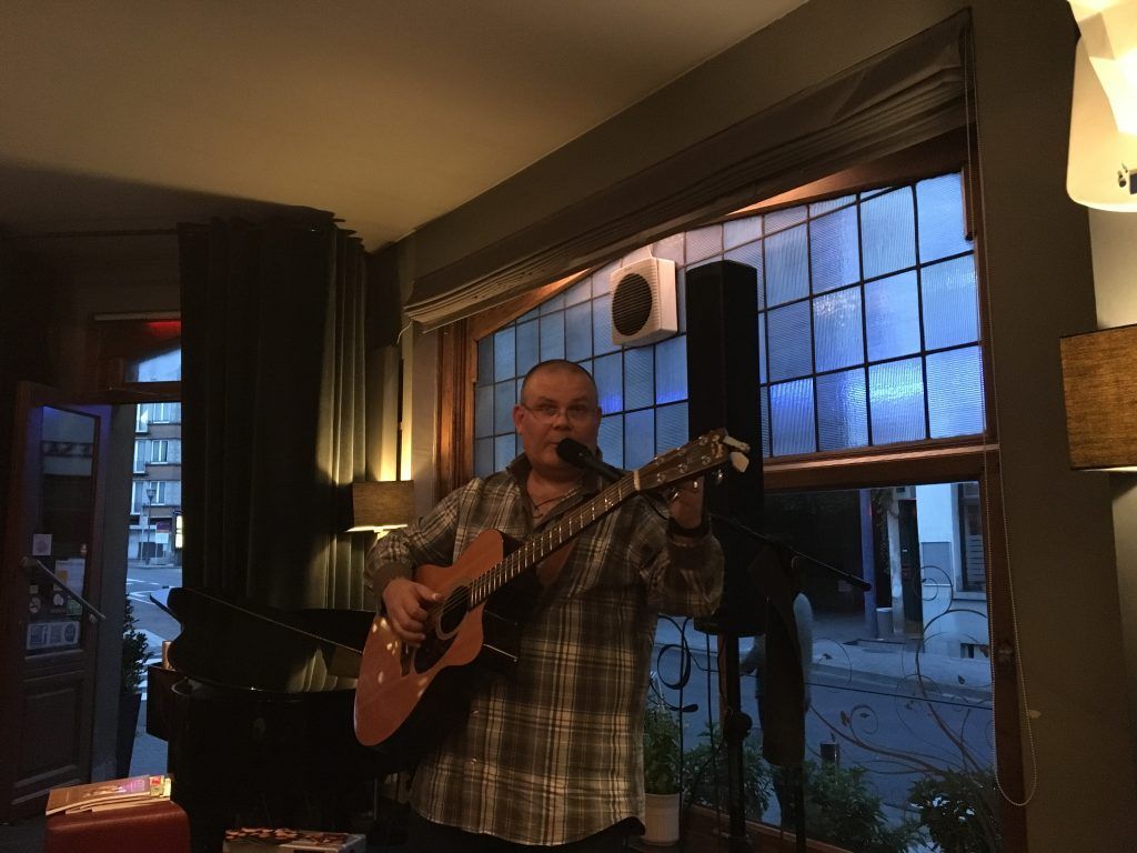 Je me souviens d’avoir déjà joué deux fois dans la même journée, mais je n’ai pas souvenir d’avoir joué deux jours de suite au même endroit. Voilà qui est chose faite. Même endroit, deux dates, deux ambiances différentes. Vous saviez que le mot vintage vient des vieux vins – par déformation de « vin d’âge » ? En tout cas le Vintage Brussels a de la bouteille, si j’ose dire. Dans le couloir des WC un mur d’affiches aux noms parfois connus en atteste.