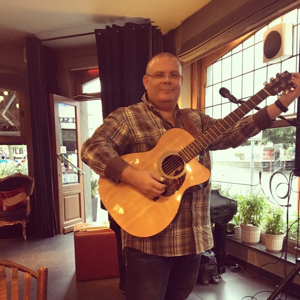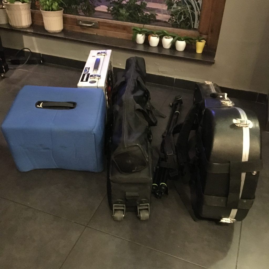Il est trop tard pour manger avant le concert. Je me contente d’un verre d’eau et je me pose un peu pour dissiper la tension de la route. Je suis content de ne jouer que de la guitare ce soir. Moins de câbles, moins de bazar « dans mes pieds » comme on dit à Liège.